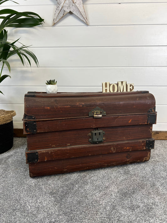Vintage Metal Storage Trunk Rustic Coffee Side Table Original Travel Storage Steamer Chest