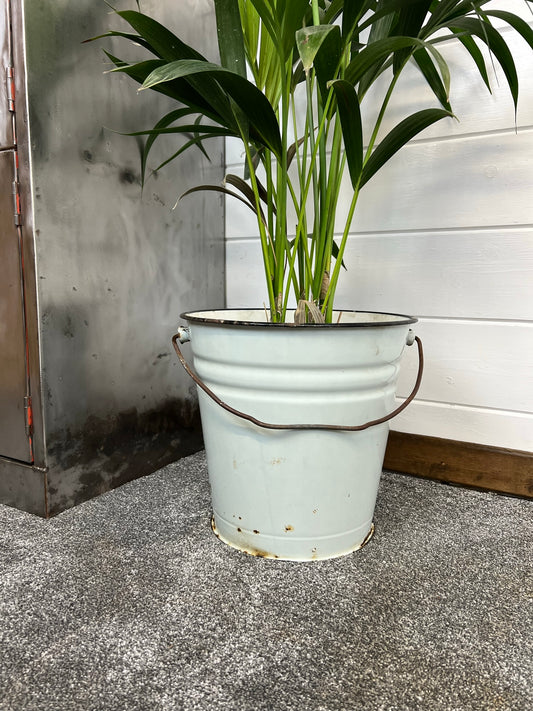 Vintage Enamel Metal Bucket USSR Russian Rustic Decor Art Deco Planter