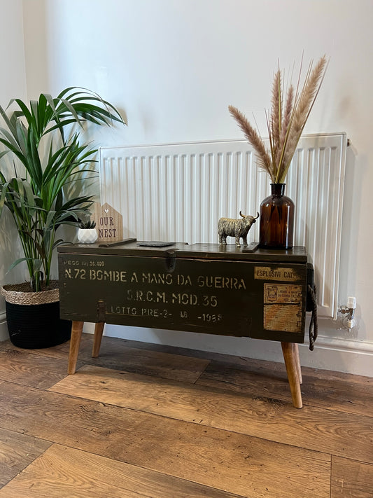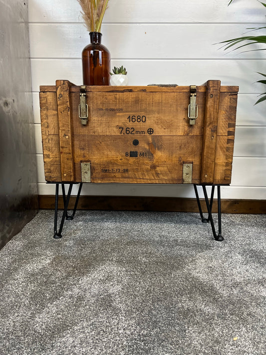 Vintage Wooden Ammo Box Side Table 1986 Rustic Storage Chest Industrial Trunk Home Coffee Table