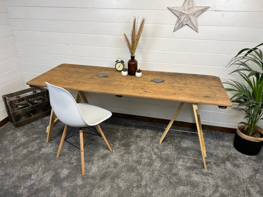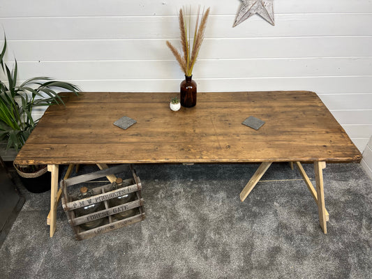 Rustic Industrial Trestle Table Top Wooden Vintage Table Farmhouse Wedding Chic