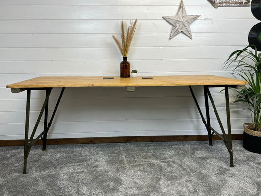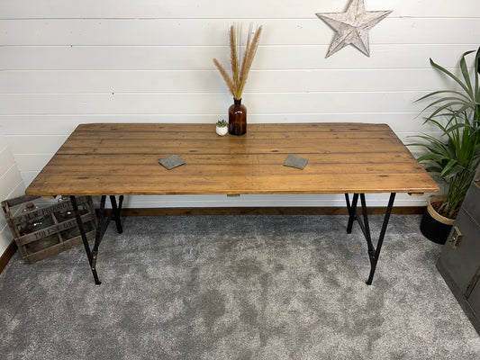 Vintage Industrial Wooden Trestle Table Rustic Folding Farmhouse Dining Boho Event