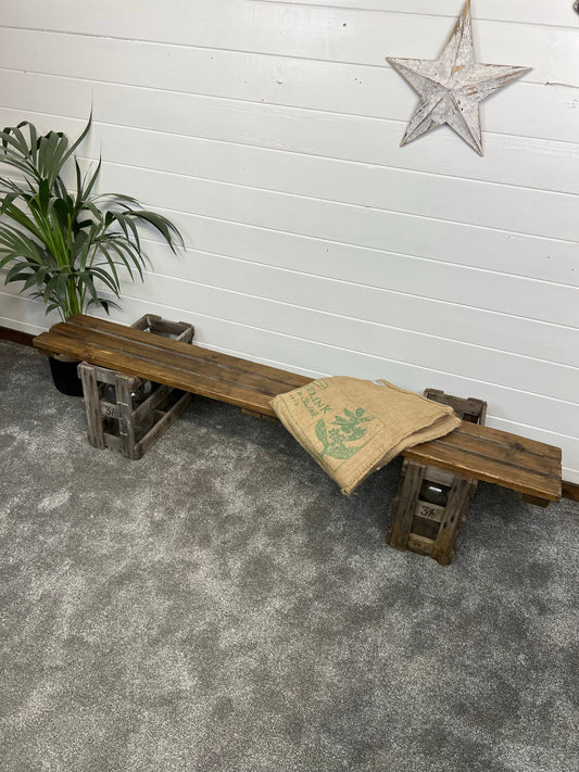 Rustic Industrial Bench Top Wooden Trestle Bench Patio Farmhouse Dining Seat Reclaimed Army