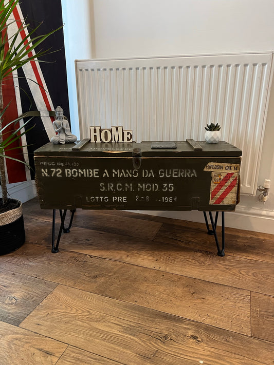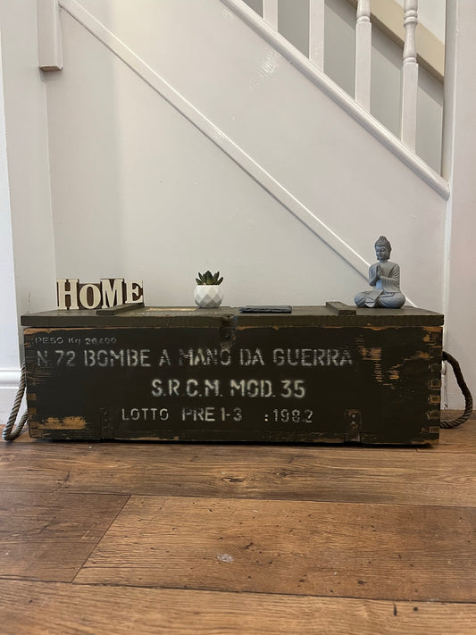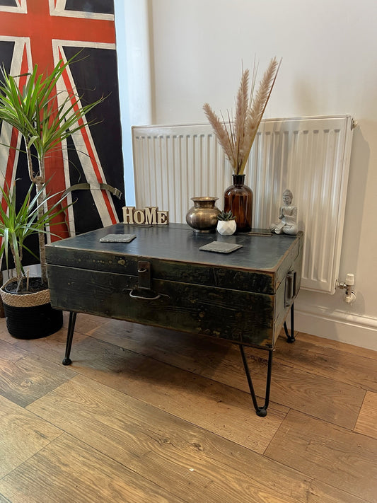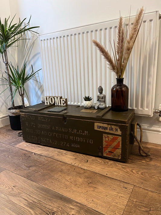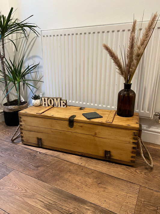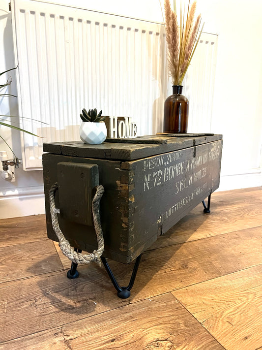 Vintage Wooden Ammo Box Rustic Chest Blanket Box Industrial Side Coffee Table