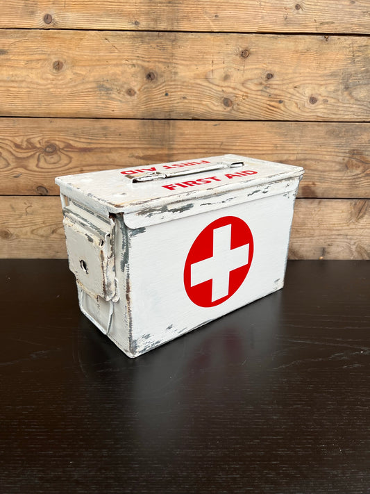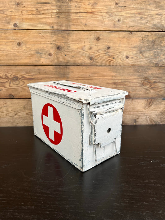 Rustic First Aid Metal Ammo Box 50cal Army Medic Distressed Industrial Decor