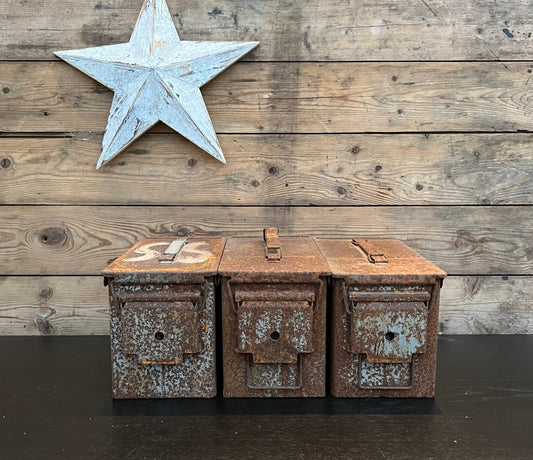 3x Metal Army Ammo Box Tin Job Lot Rustic SOLID Shop Display Geocache Stash Tool Box