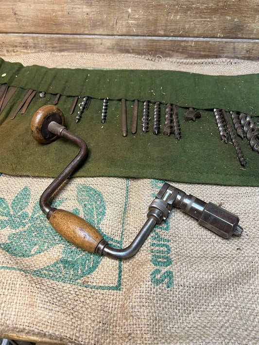 Vintage Retro Hand Brace Drill and Tool Roll With Auger Drill Bits