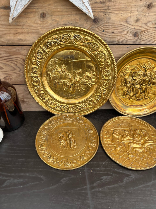 7x Vintage Decorative Brass Wall Plate Job Lot Tavern Scene Boho Bohemian Brass Décor