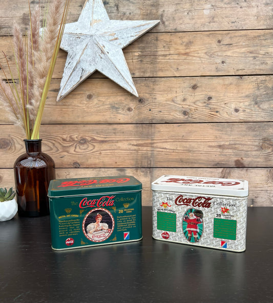 2x Vintage Coca Cola Metal Art Collectors Cards In Tin Retro Collectable Advertising Display