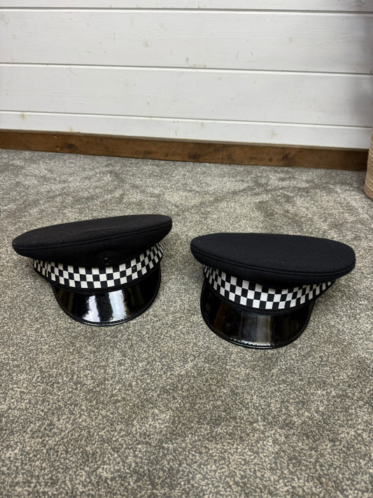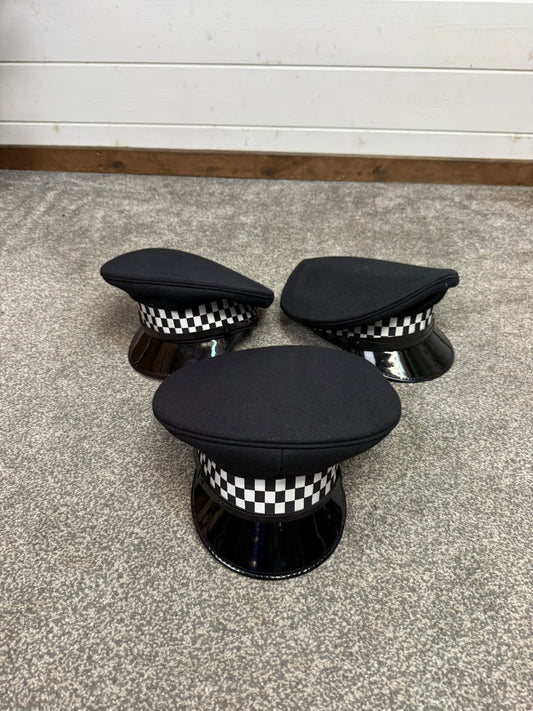 Ex Police Black Peaked Cap Checked Band Collector Film TV Fancy Dress Prop