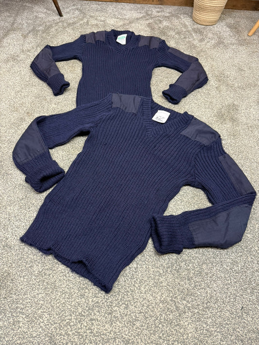 2x Ex Police Blue Wool Jumper 40" Ribbed Commando Pullover Work Farmer Hiking Woolly Pully