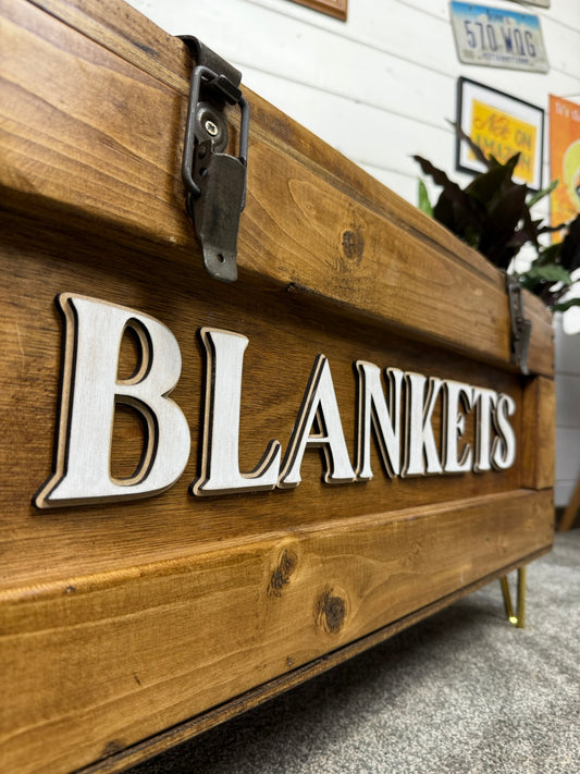 Wooden Blanket Box Large Reclaimed Crate Chest Coffee Table Metal Legs Rustic Home Decor