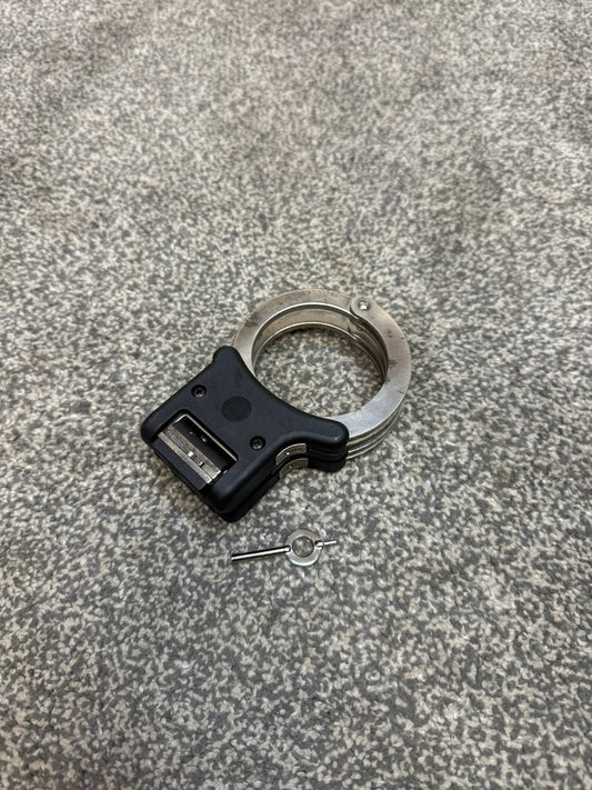 Ex Police Folding Hiatt Handcuffs Hinged Cuffs & Key Security Collectible