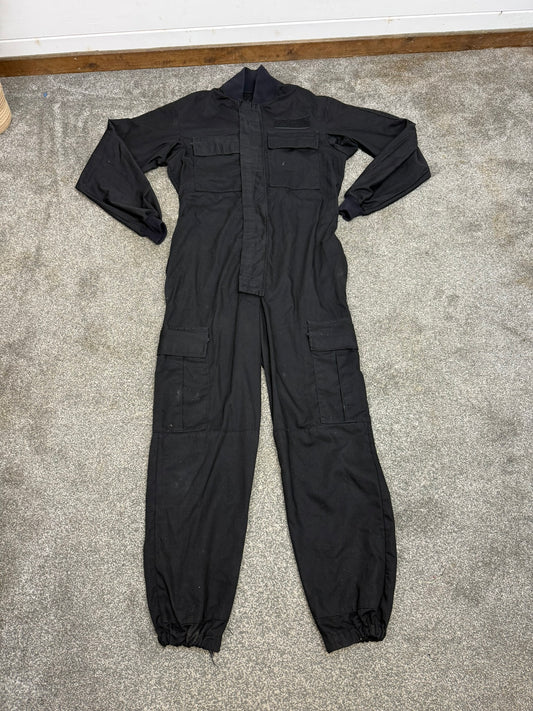 Black Cargo Coveralls Ex Police Riot Overalls 40" LARGE Workshop Garden Mechanic
