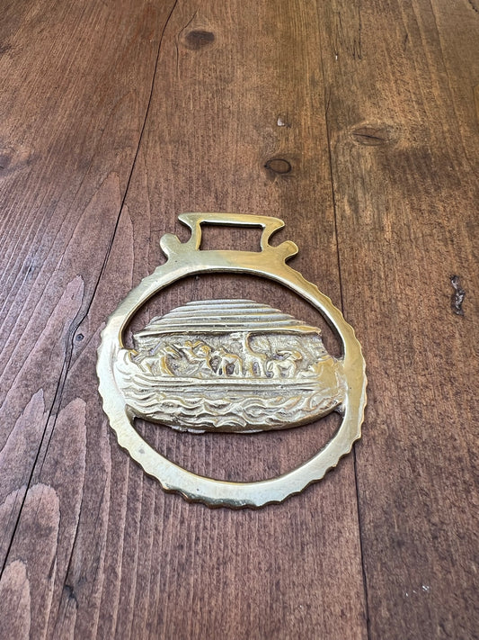 Sold outVintage Old Horse Brass Noah's Ark
