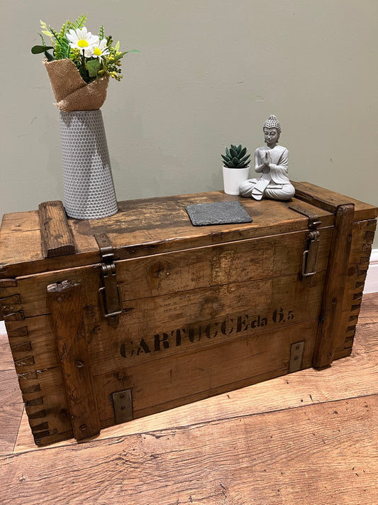 Wooden Ammo Box Vintage Rustic Storage Chest Industrial Trunk Home Coffee Table