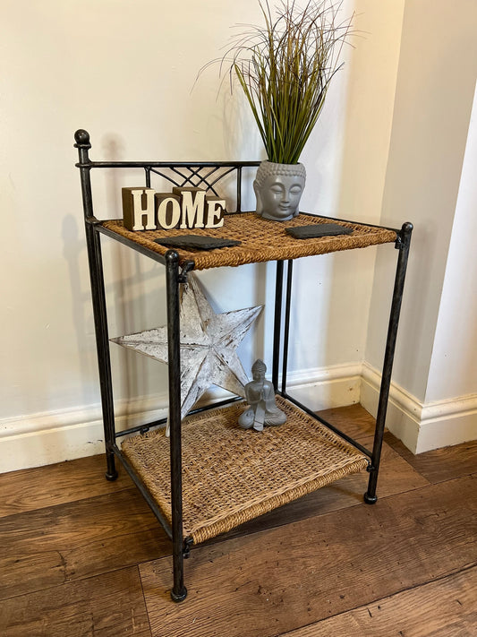 Rattan Wicker Folding Side Table Rustic Industrial Home Bedside Boho Chic