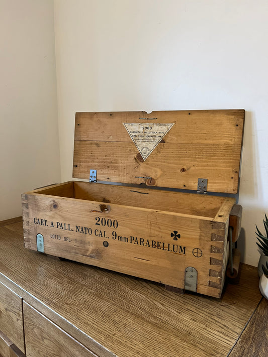 Wooden Ammo Box Vintage 1984 Rustic Storage Toy Chest Industrial Trunk Coffee Table