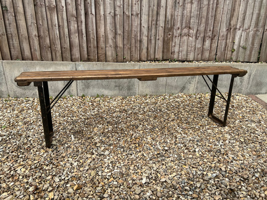 Vintage Folding Trestle Bench Rustic Farmhouse Dining Industrial Seat Reclaimed Army