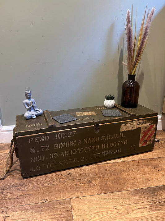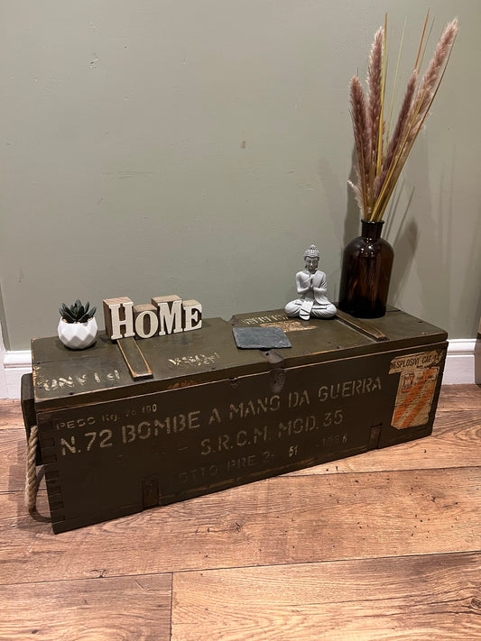 Wooden Ammo Box Vintage 1985 Rustic Storage Toy Chest Industrial Trunk Coffee Table
