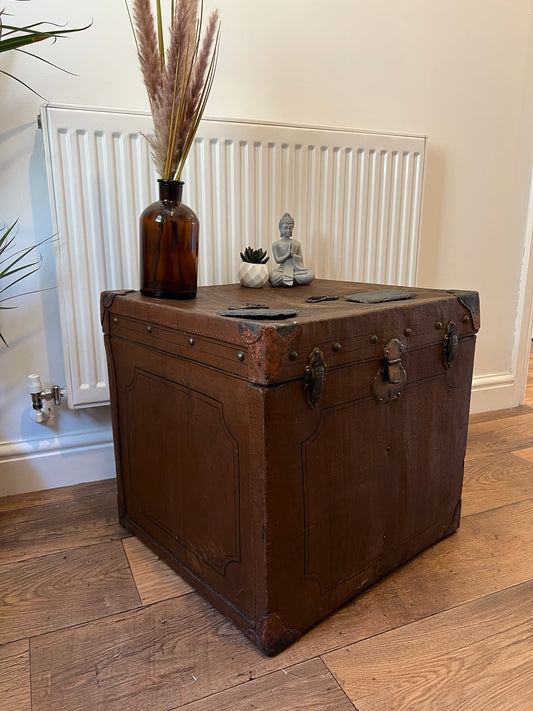 Vintage Square Steamer Trunk Coffee Side Table Original Travel Storage Trunk