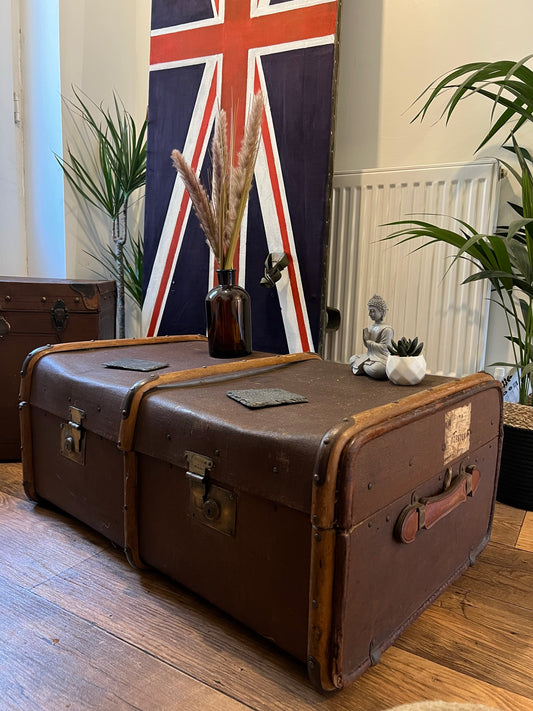 Vintage Steamer Trunk Suitcase Coffee Side Table Original Travel Storage Trunk GWR Label