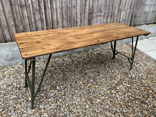Rustic Industrial Trestle Table Wooden Folding Table VGC Reclaimed Farmhouse Dining Ex Army Office Desk
