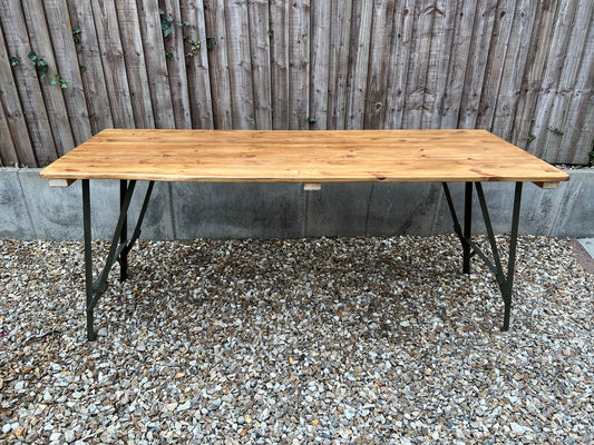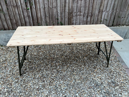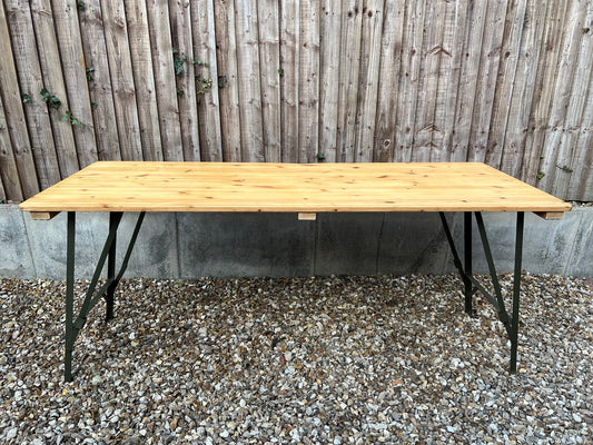 Wooden Folding Trestle Table VGC Rustic Farmhouse Dining Wedding Reclaimed Ex Army Industrial Office Desk