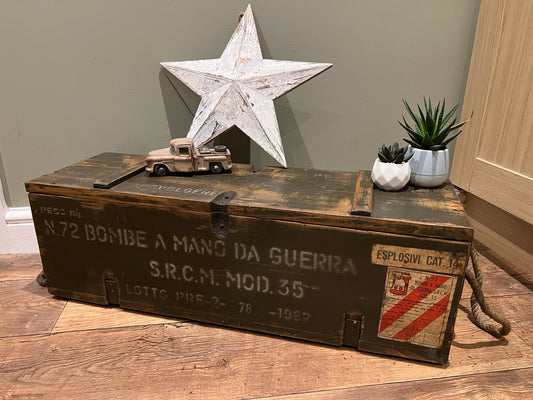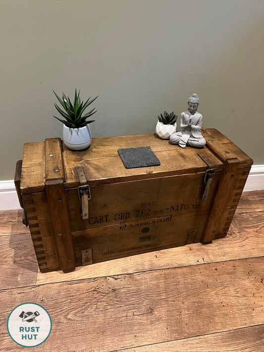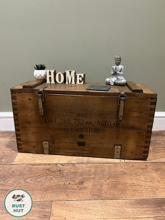 Wooden Ammo Box Vintage 1988 Rustic Storage Toy Chest Industrial Trunk Coffee Table