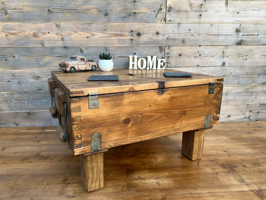 Vintage Rustic Storage Chest Ammo Box Wooden Industrial Trunk Home Coffee Table
