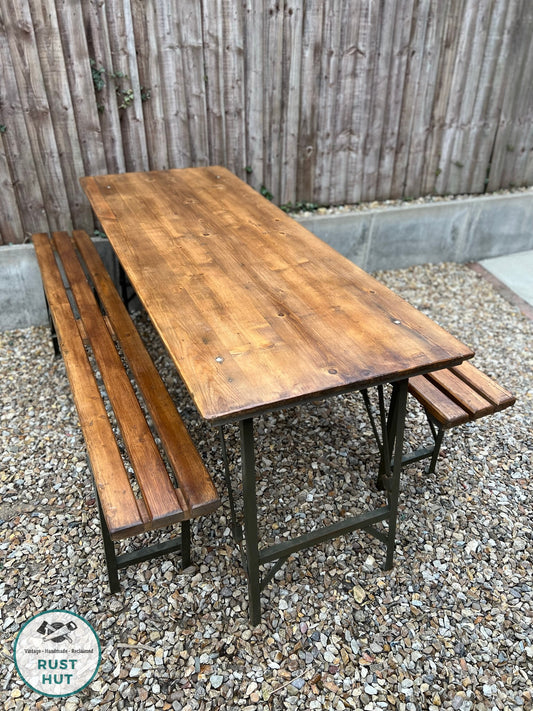 Rustic Wooden Folding Trestle Table Bench Set Farmhouse Home Dining Garden Reclaimed