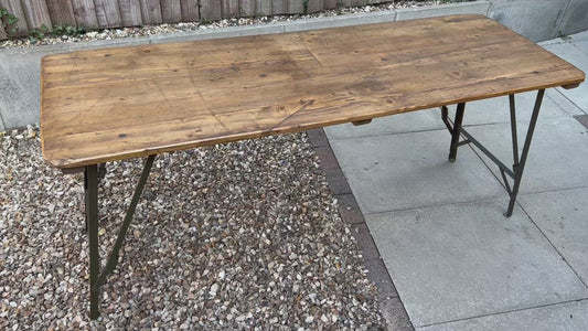 Rustic Wooden Folding Trestle Table VGC Farmhouse Dining Wedding Reclaimed Ex Army Industrial Office Desk