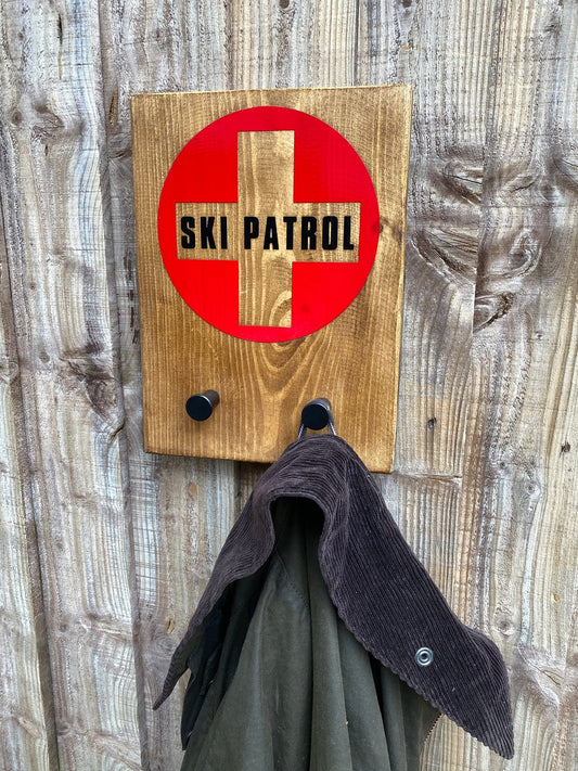 Rustic Ski Patrol Coat Hook Key Hook Handmade Reclaimed Wooden Sign Home Decor Skiing