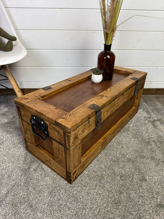 Large Wooden Storage Chest Rustic Industrial Reclaimed Trunk Home Decor Blanket Storage Side Table