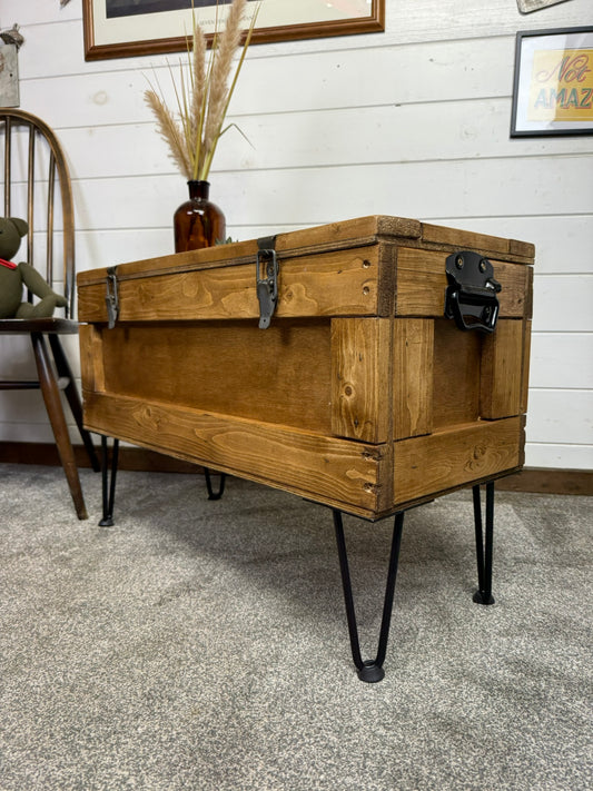 Large Wooden Chest Box Table Metal Legs Blanket Storage Rustic Home Industrial Deco