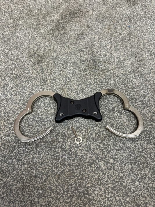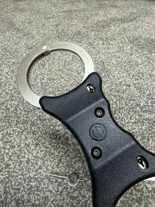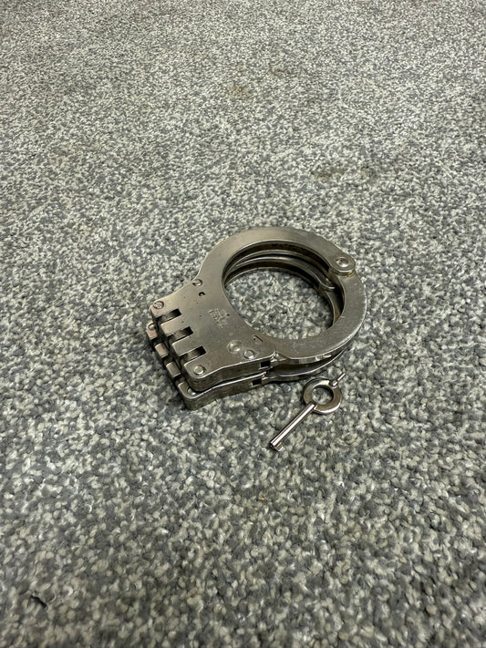 Ex Police Hiatt Model 2050 Folding Hinged Handcuffs & 1x Key Security Cuffs Collectible Memorabilia