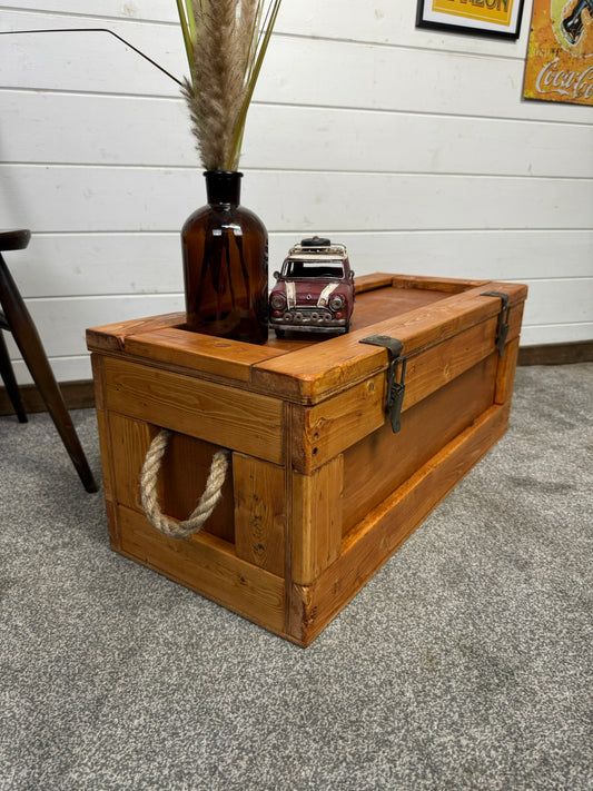 Wooden Military Chest Crate Reclaimed Waxed Storage Box Rustic Industrial Side Table