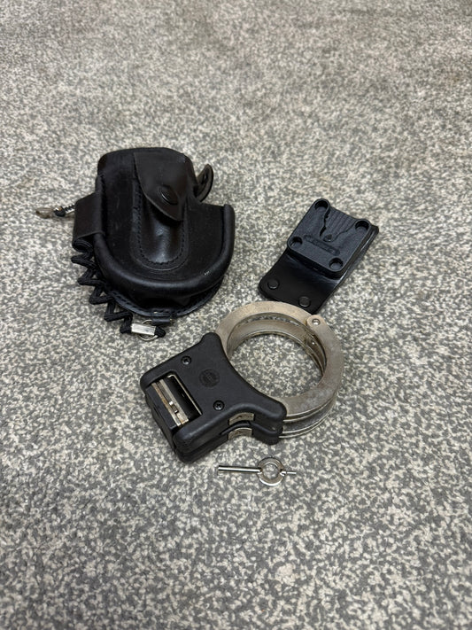 Ex Police TCH Rigid Handcuffs & Leather Belt Pouch With Key Security Cuffs