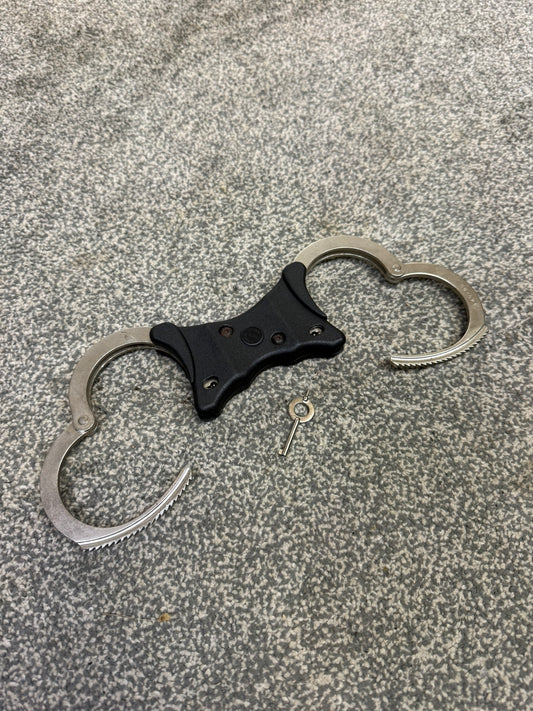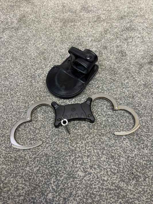 Ex Police Folding Hiatt Handcuffs Hinged Cuffs PSNI Pouch & Key Security Collectible