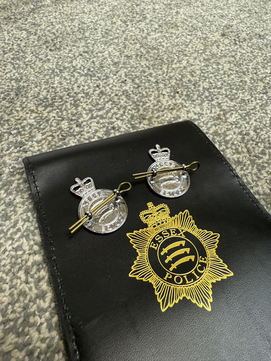 Ex Essex Police Leather Notepad Cover & 2x Badges Collectable Memorabilia Display
