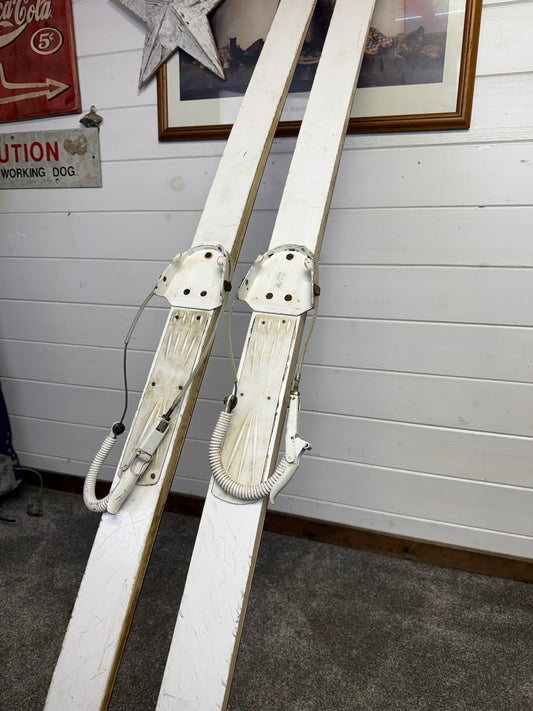 Vintage White Skis Military Rustic Wall Decor Shop Window Cabin Display Garden Centre Nursery Shop Pub