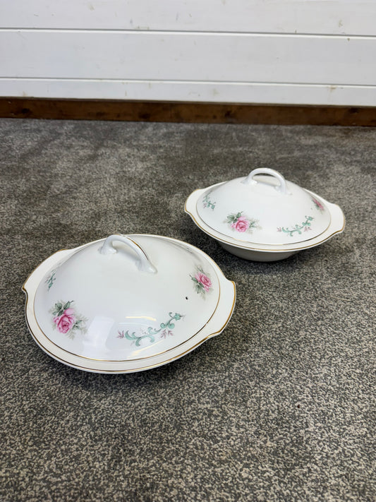 Vintage Royal Grafton Fine Bone China Vegetable Tureen Pink Rose 2x Lidded Serving Dishes