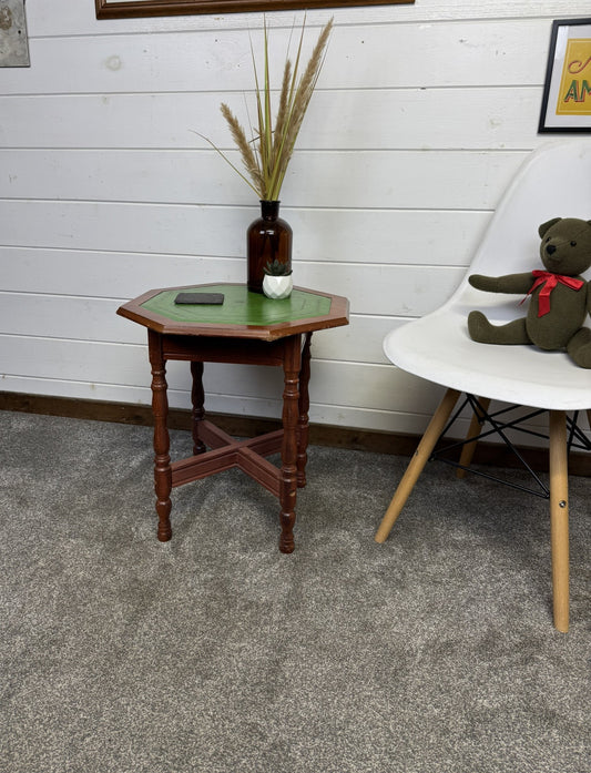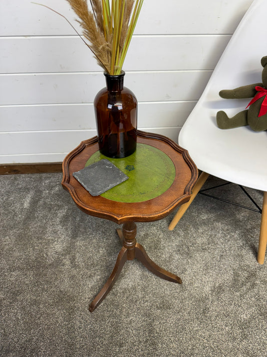 Vintage Occasional Green Leather Top Wine Table Mid Century Side Table