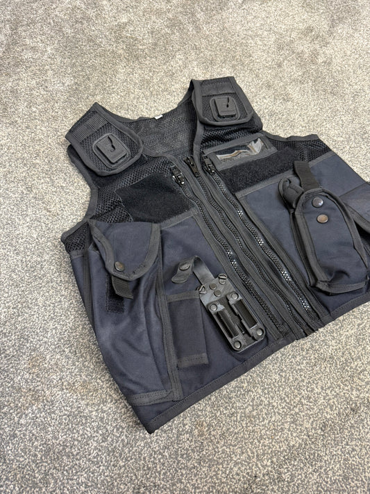 Ex Police Black Arktis Tactical Utility Vest & Pouches Security Airsoft - X Small