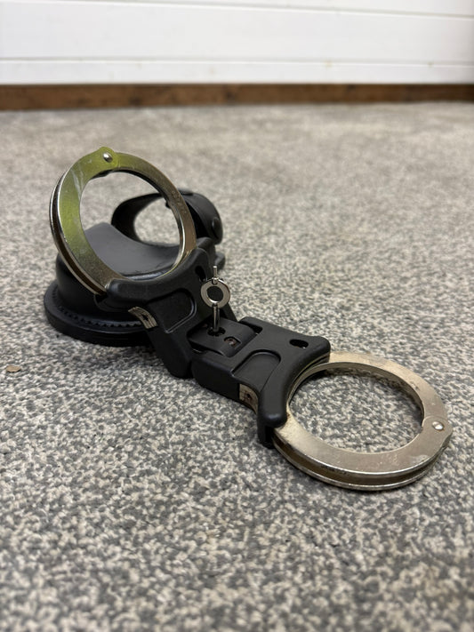 Ex Police Folding Hiatt Handcuffs Hinged Cuffs PSNI Pouch & Key Security Collectible