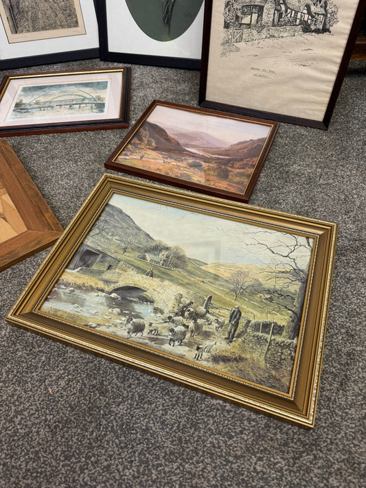 9x Framed Vintage Building Landscape Prints Sketches Wall Art Job Lot