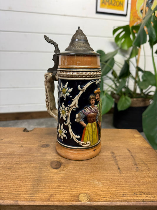 Vintage Ceramic German Beer Stein Tankard Lidded Pub Bar Decor Breweriana