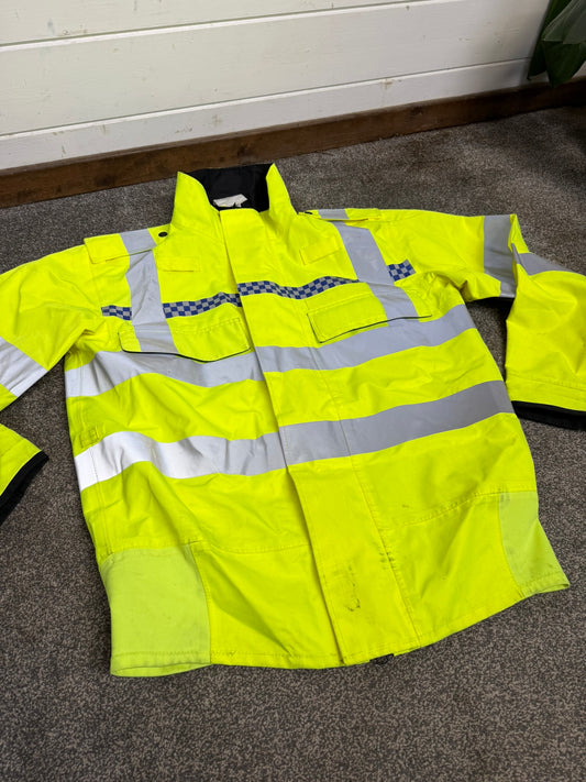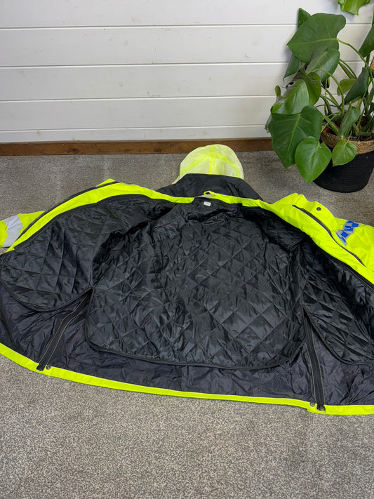 Ex Police Hi Vis Waterproof Jacket Coat Quilted Lining & Hood Large Security Walking
