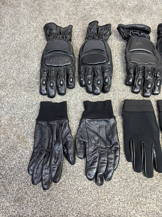 Ex Police Black Leather Gloves x6 Pairs Job Lot Riot Gloves Driving Walking Security