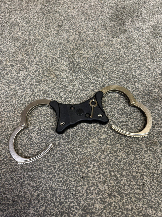 Ex Police Folding Hiatt Handcuffs Hinged Cuffs & Key Security Collectible