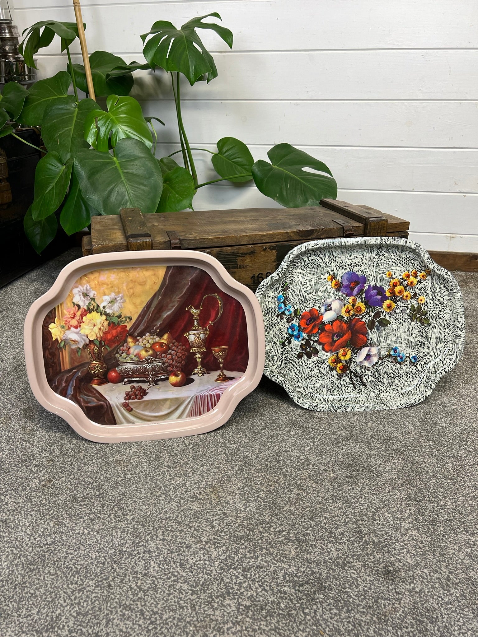 2x Vintage Floral Metal Trays "Elite" Trays 50's 60's Retro Made in England